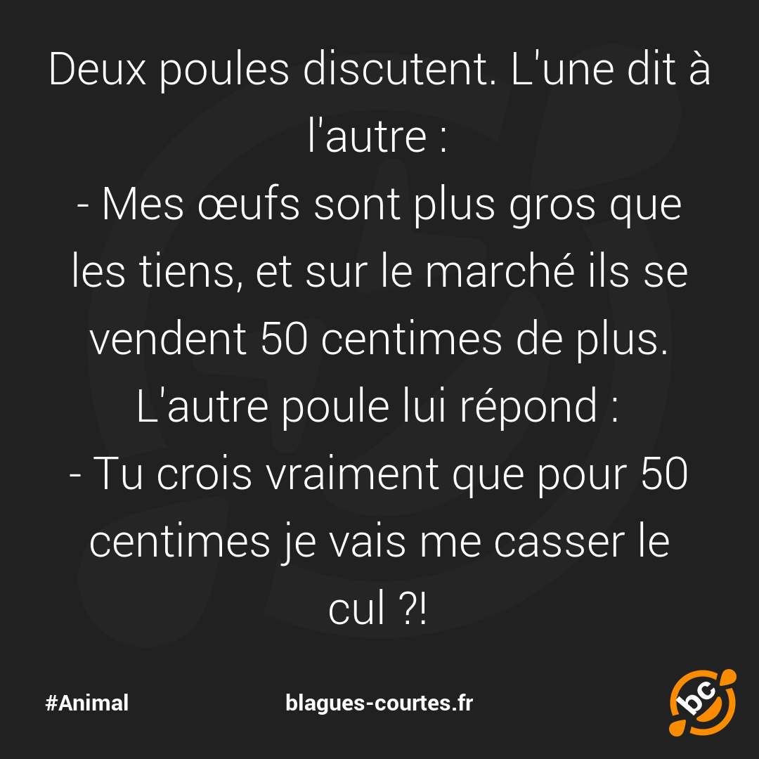 Deux poules discutent. L'une dit à l'autre :