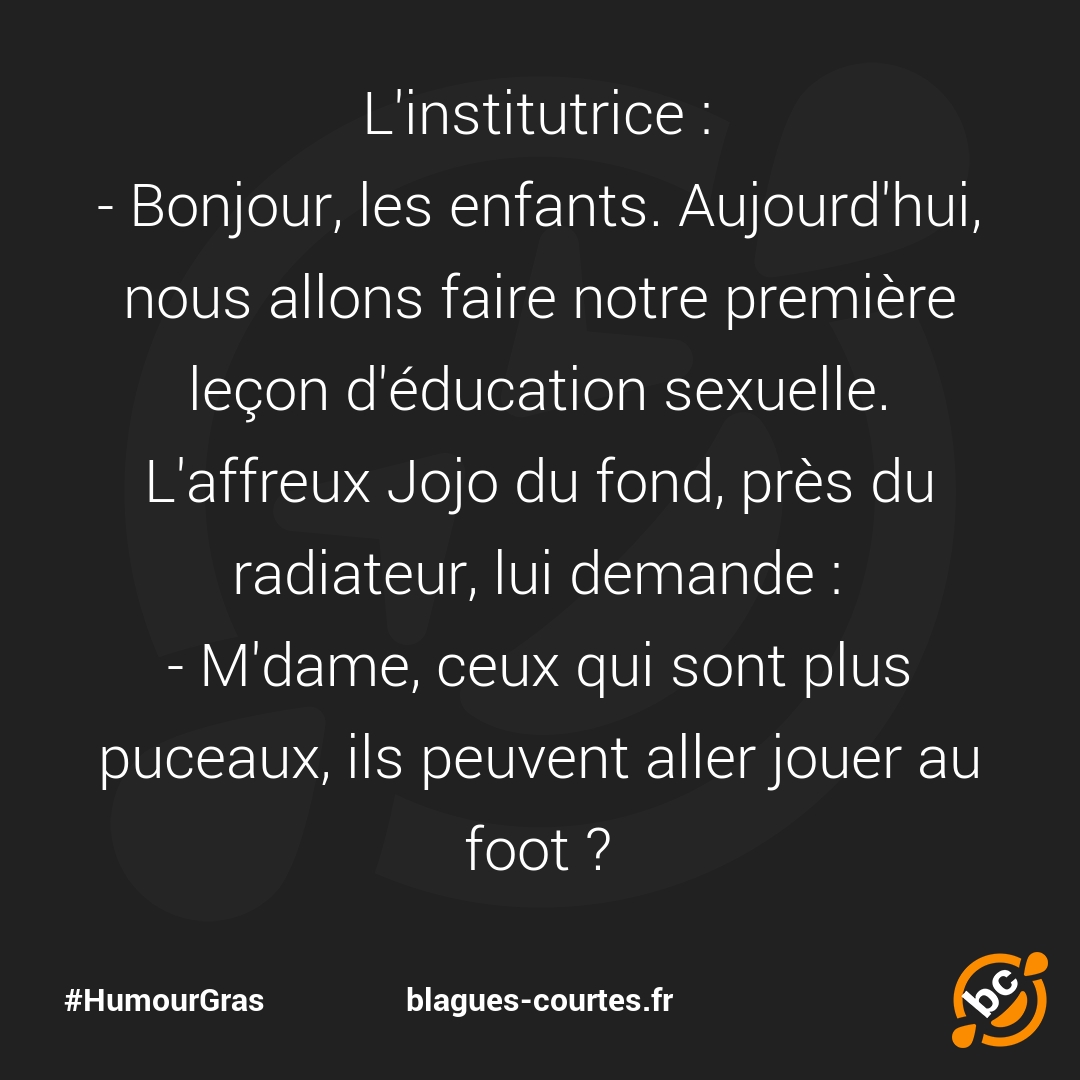 - M'dame, ceux qui sont plus puceaux, ils peuvent aller jouer au foot ?