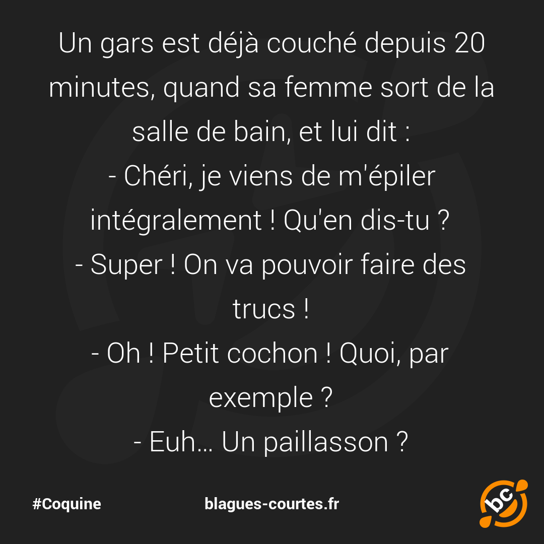 Un gars est déjà couché depuis 20 minutes, quand sa femme sort de la salle de bain, et lui dit :