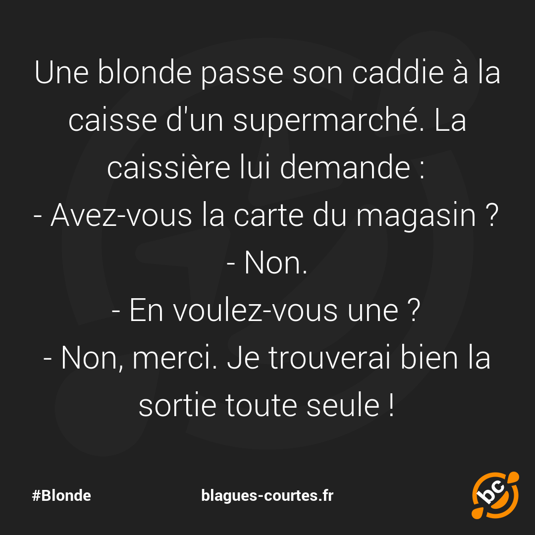 Une blonde passe son caddie à la caisse d'un supermarché. La caissière lui demande :