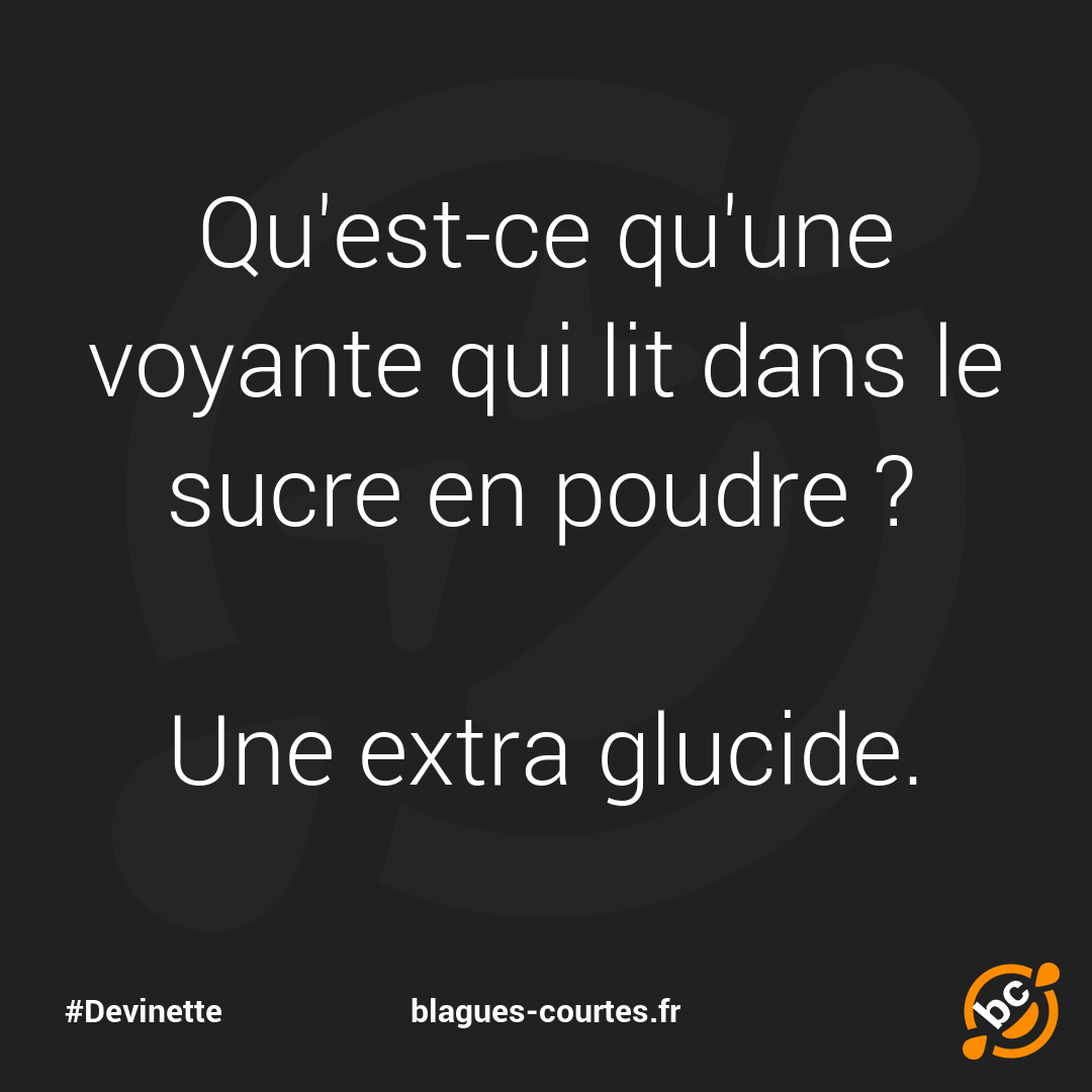 Qu'est-ce qu'une voyante qui lit dans le sucre en poudre ? Une extra glucide.