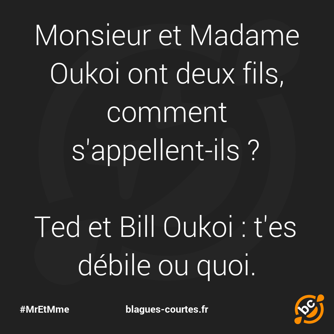 Monsieur et Madame Oukoi ont deux fils, comment s'appellent-ils ? Ted et Bill Oukoi : t'es débile ou quoi.
