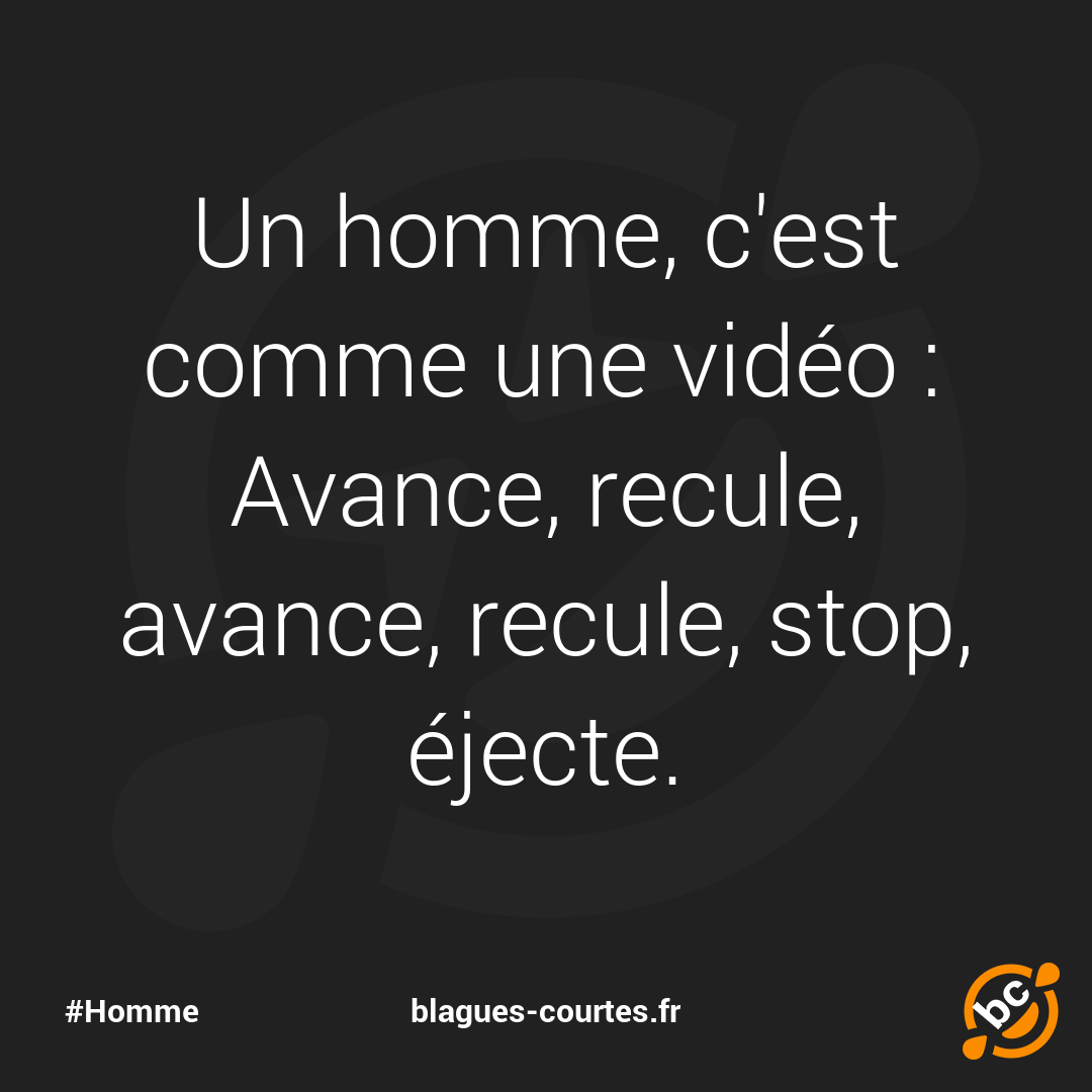 Un homme, c'est comme une vidéo : Avance, recule, avance, recule, stop, éjecte.