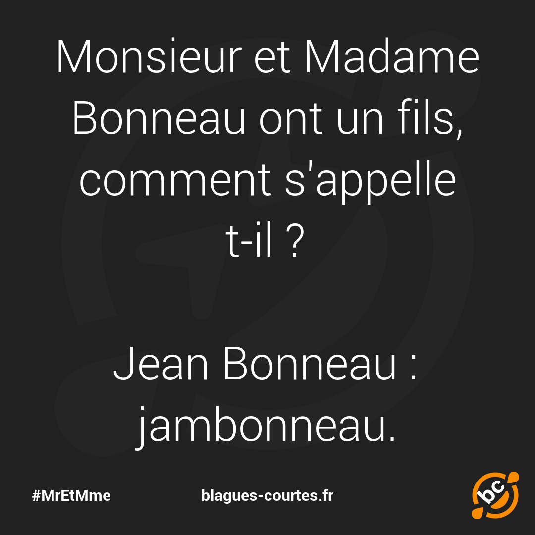 Monsieur et Madame Bonneau ont un fils, comment s'appelle t-il ? Jean Bonneau : jambonneau.