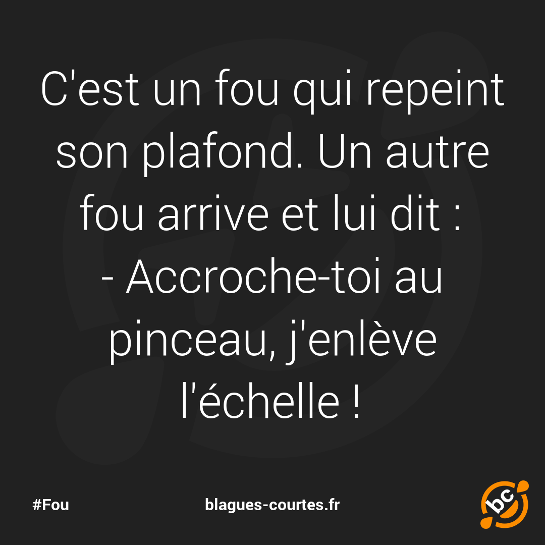 C'est un fou qui repeint son plafond. Un autre fou arrive et lui dit : - Accroche-toi au pinceau, j'enlève l'échelle !