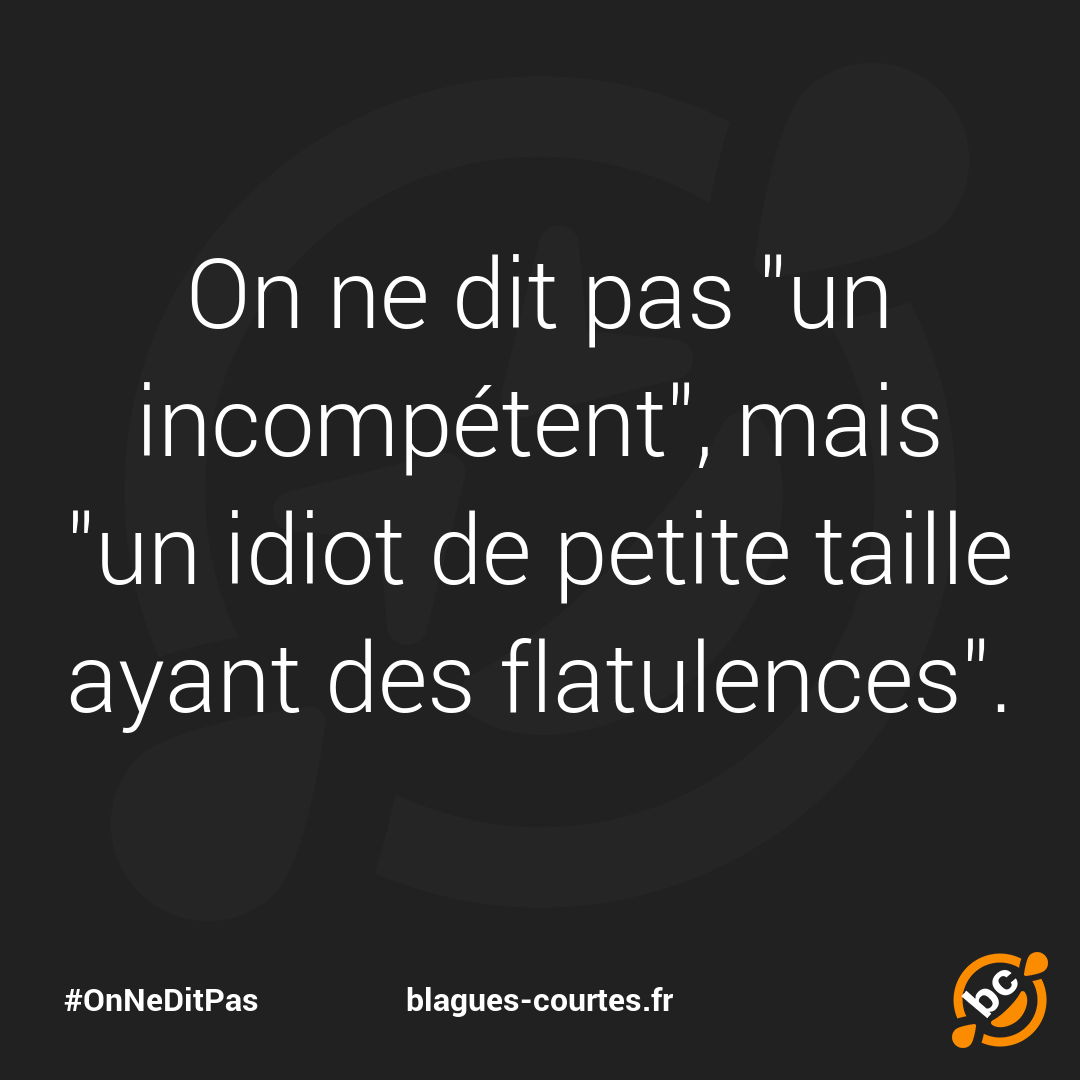 On ne dit pas "un incompétent", mais "un idiot de petite taille ayant des flatulences".