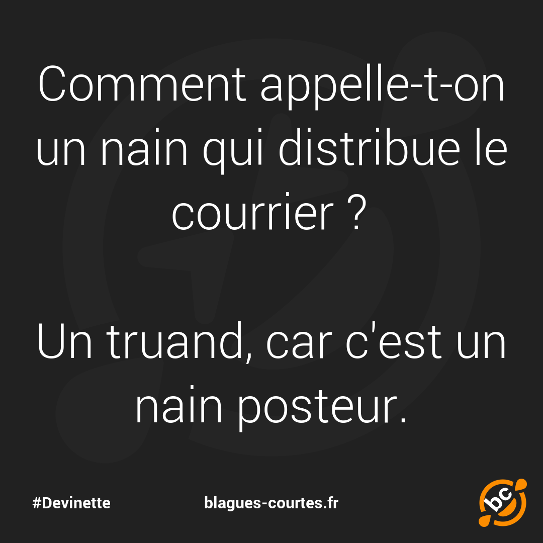 Comment appelle-t-on un nain qui distribue le courrier ? Un truand, car c'est un nain posteur.