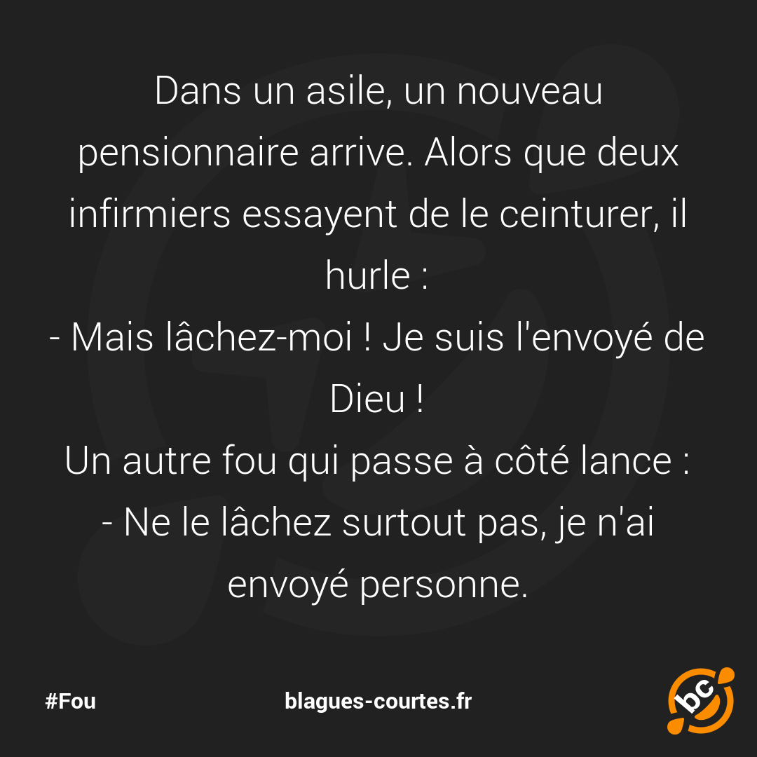 Dans un asile, un nouveau pensionnaire arrive. Alors que deux infirmiers essayent de le ceinturer, il hurle :