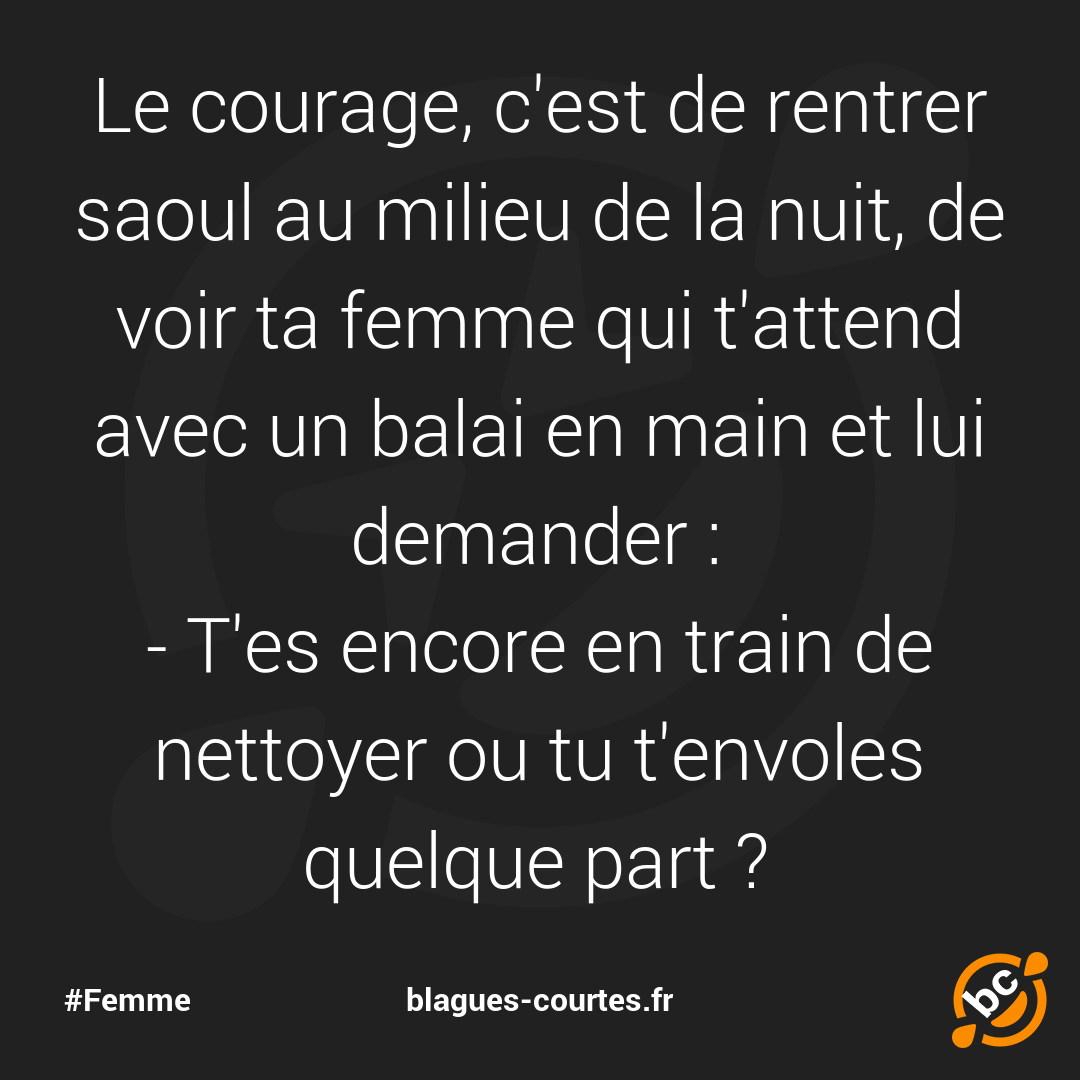 Le courage, c'est de rentrer saoul au milieu de la nuit, de voir ta femme qui t'attend avec un balai en main et lui demander :