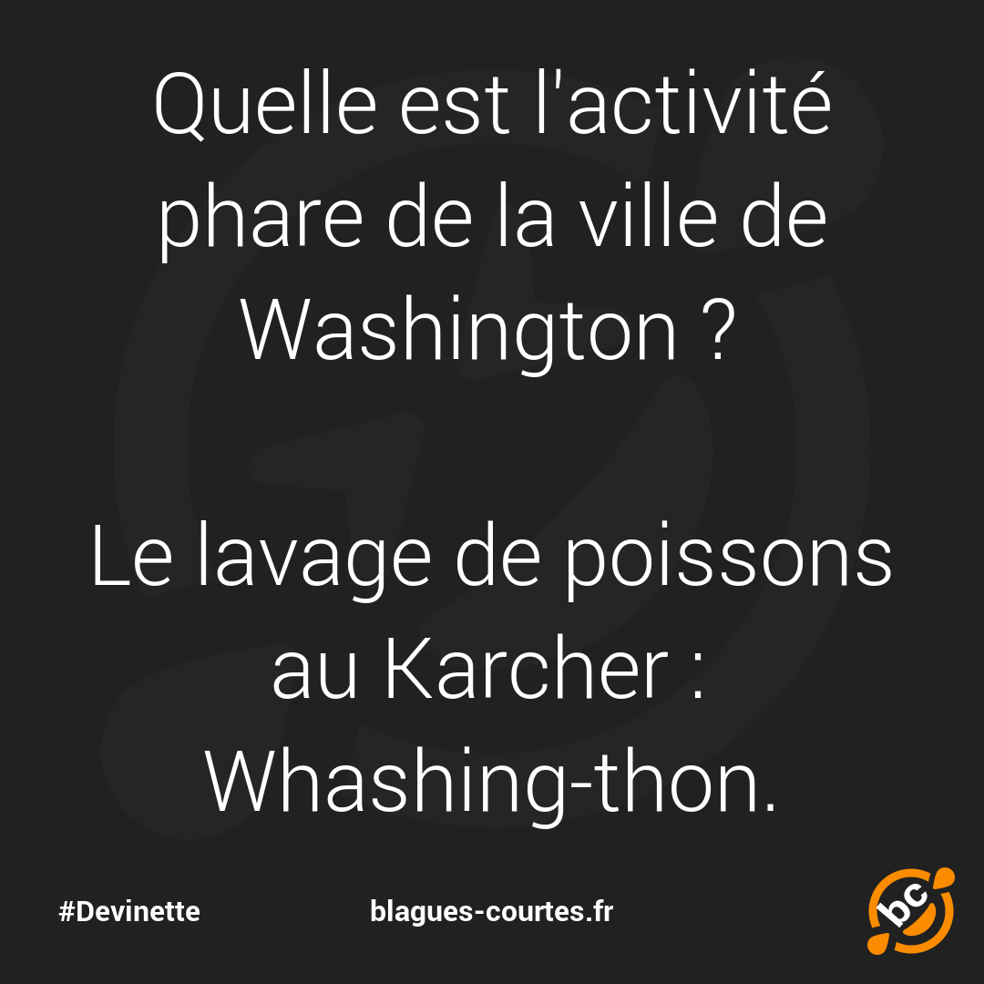 Quelle est l'activité phare de la ville de Washington ? Le lavage de poissons au Karcher : Whashing-thon.