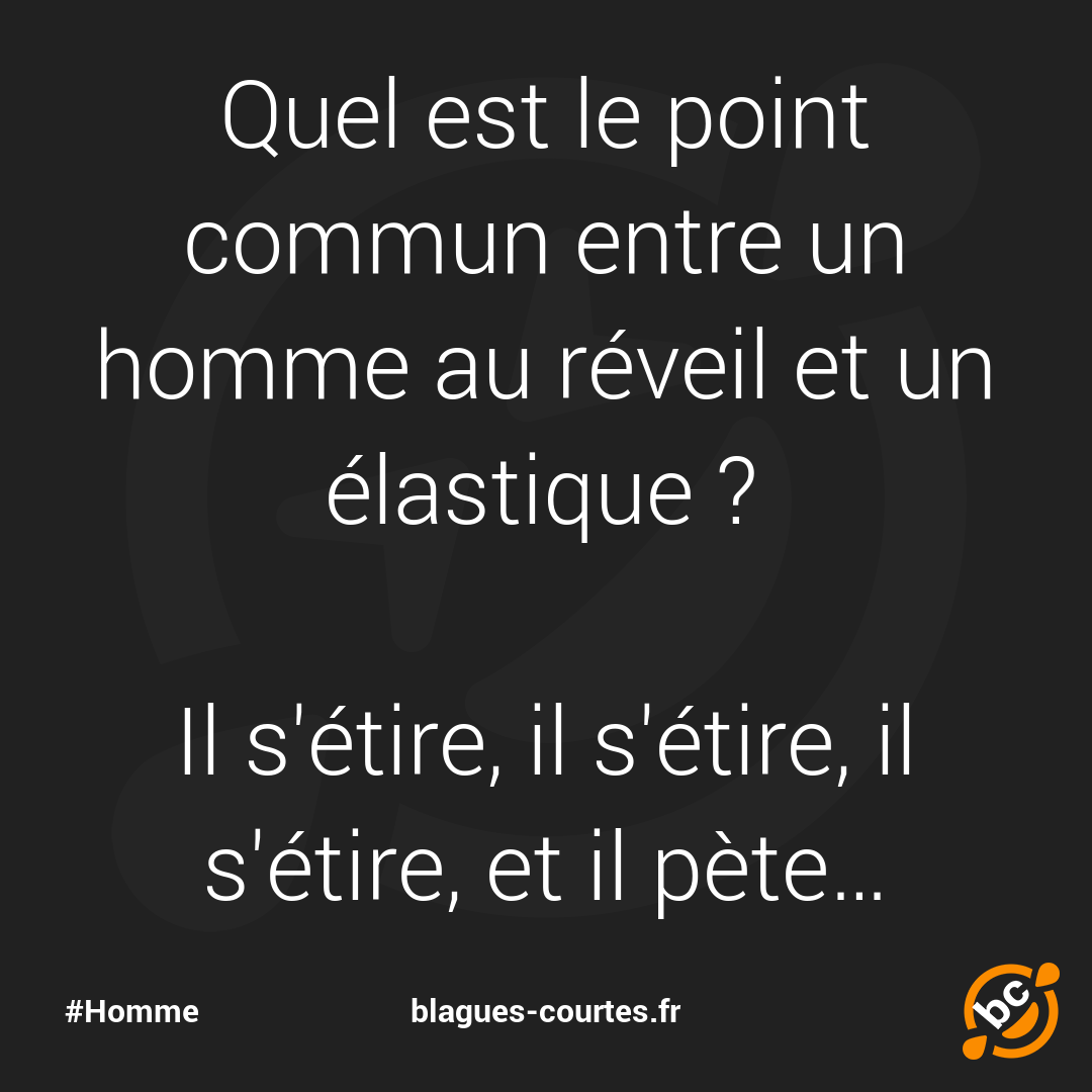 Quel est le point commun entre un homme au réveil et un élastique ? Il s'étire, il s'étire, il s'étire, et il pète…
