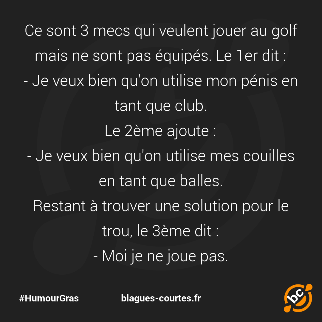 Ce sont 3 mecs qui veulent jouer au golf mais ne sont pas équipés. Le 1er dit :