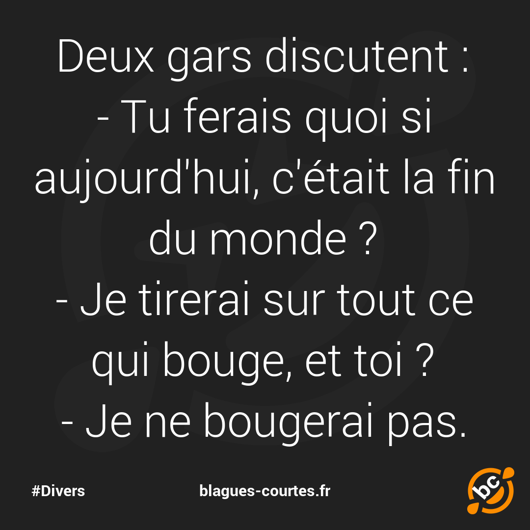- Tu ferais quoi si aujourd'hui, c'était la fin du monde ?