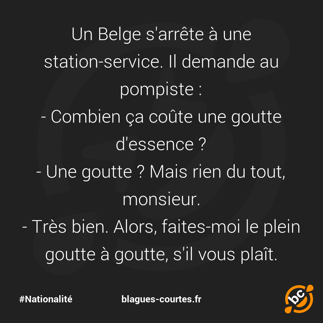 Un Belge s'arrête à une station-service. Il demande au pompiste :