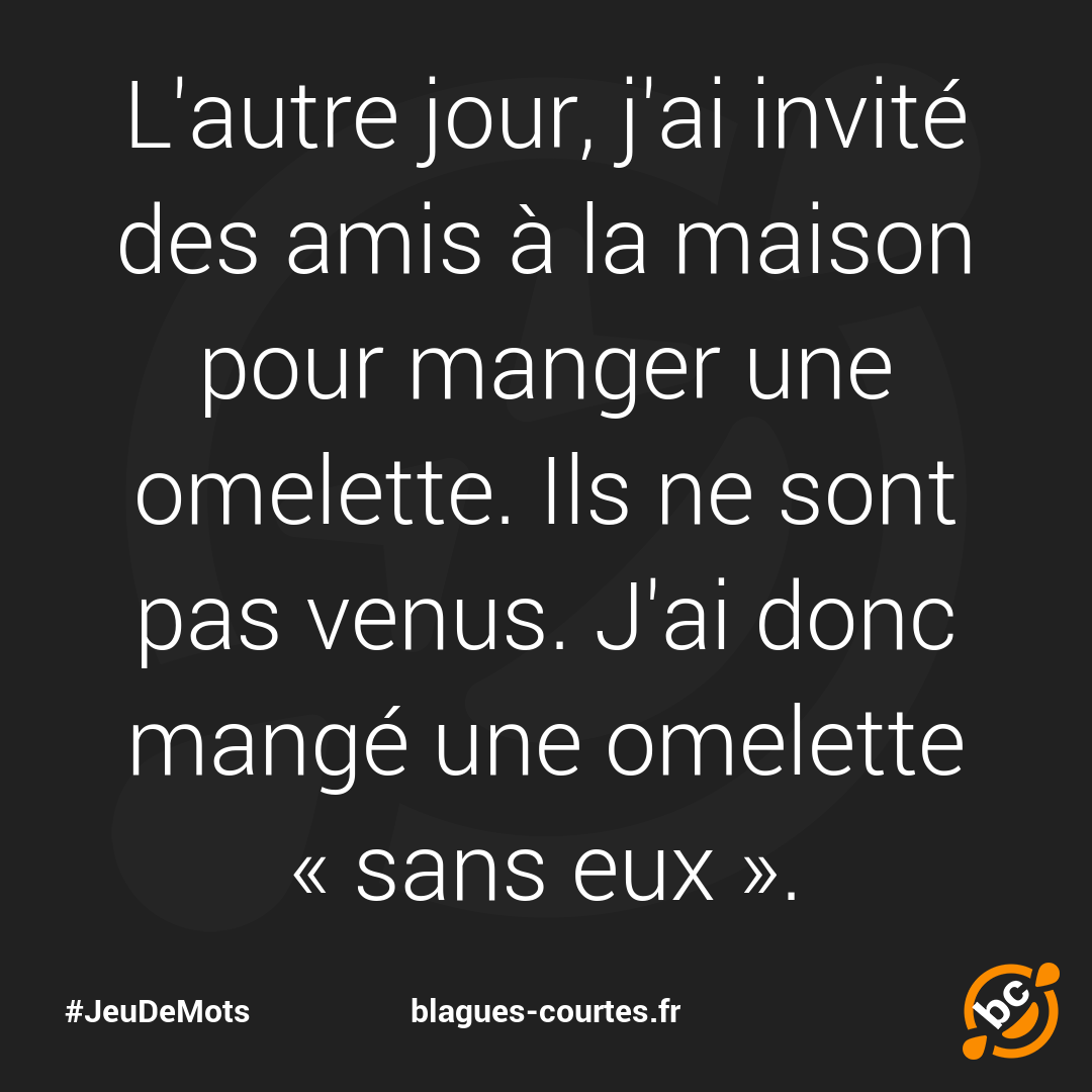 L'autre jour, j'ai invité des amis à la maison pour manger une omelette. Ils ne sont pas venus. J'ai donc mangé une omelette « sans eux ».