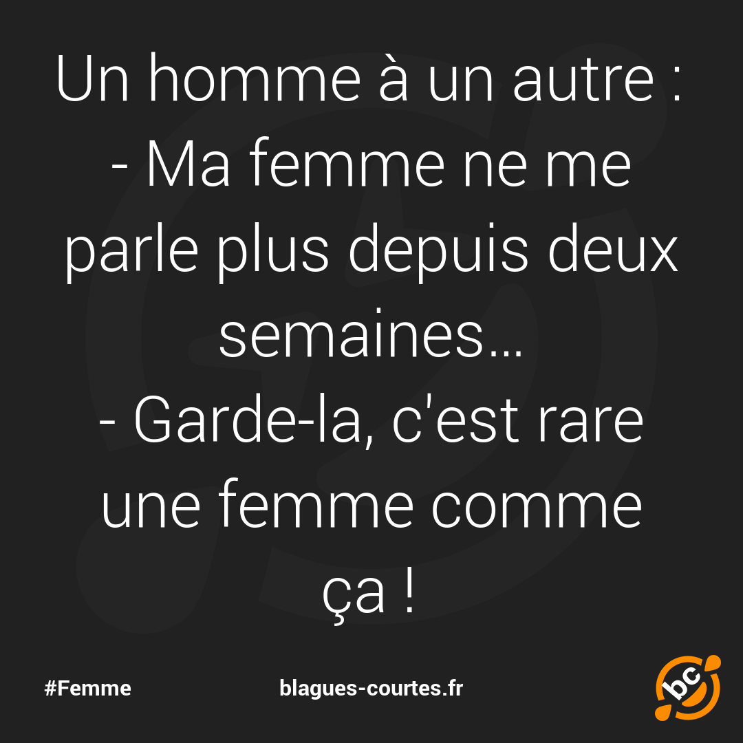 Un homme à un autre : - Ma femme ne me parle plus depuis deux semaines… - Garde-la, c'est rare une femme comme ça !