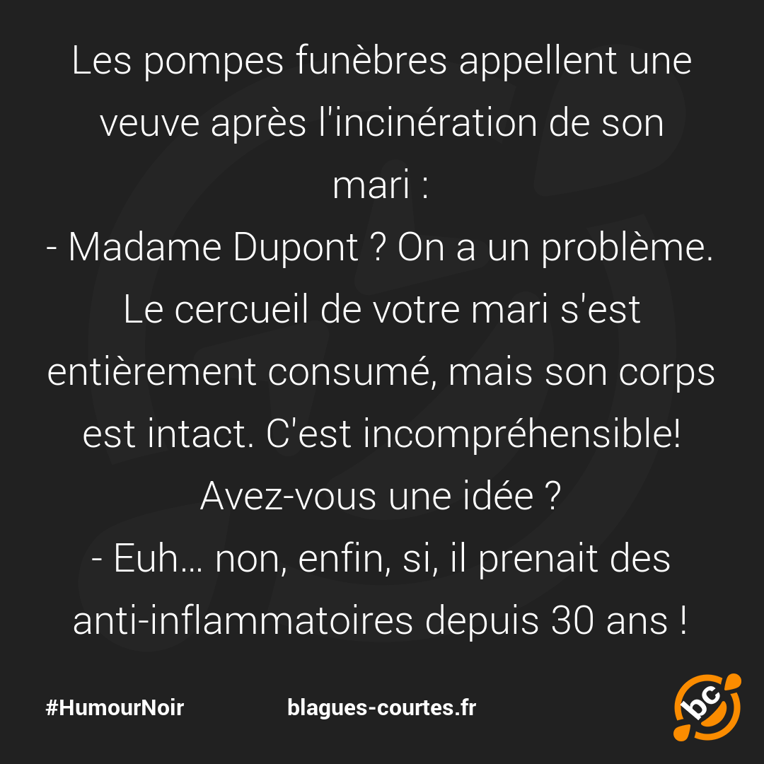 - Madame Dupont ? On a un problème. Le cercueil de votre mari s'est entièrement consumé, mais son corps est intact. C'est incompréhensible! Avez-vous une idée ?