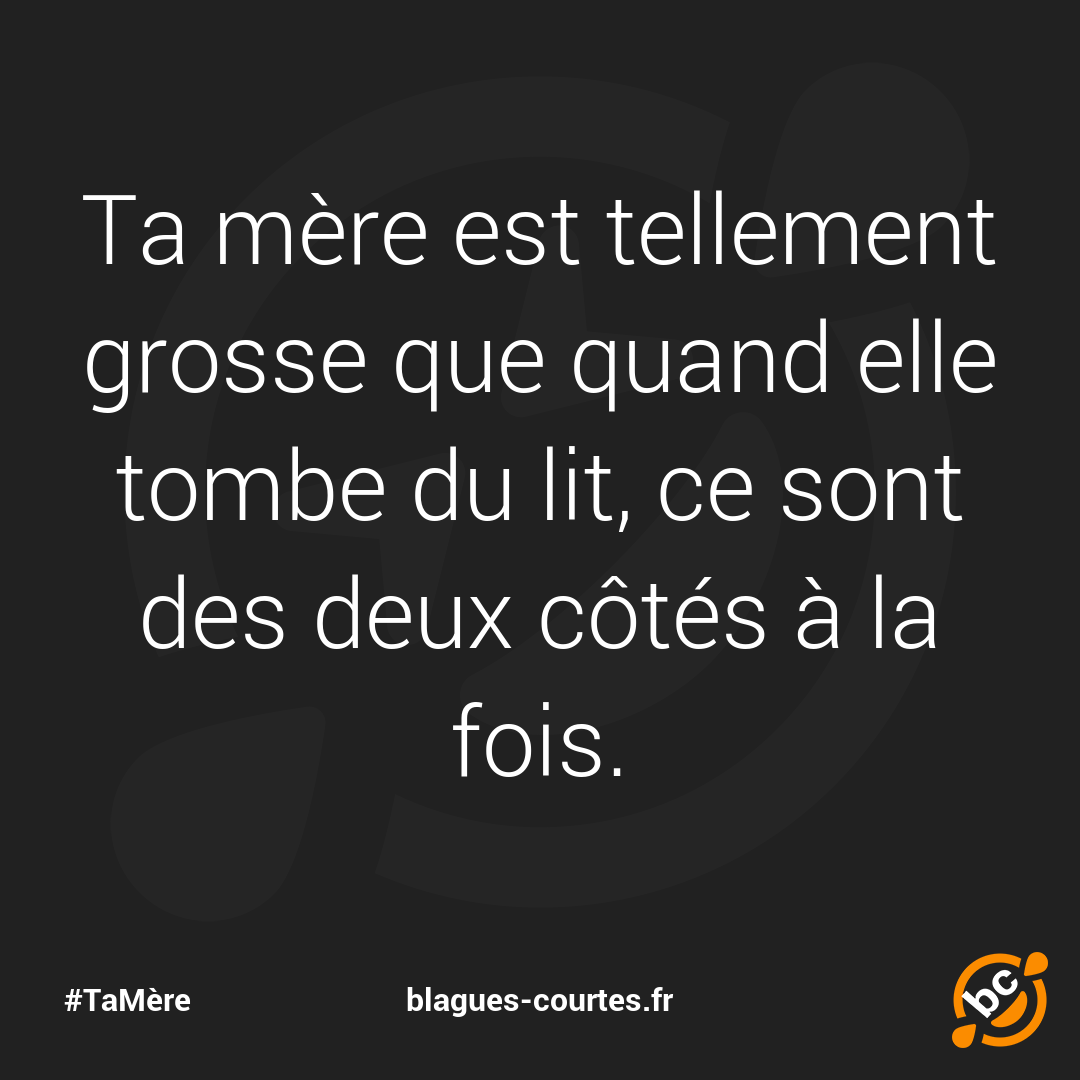 Ta mère est tellement grosse que quand elle tombe du lit, ce sont des deux côtés à la fois.