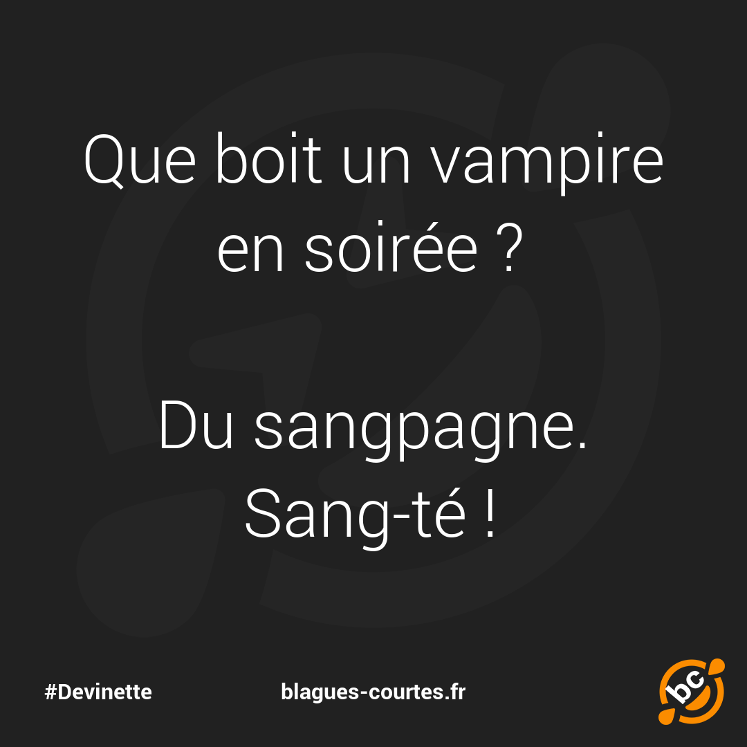 Que boit un vampire en soirée ? Du sangpagne. Sang-té !