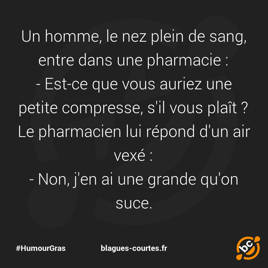 Un homme, le nez plein de sang, entre dans une pharmacie :