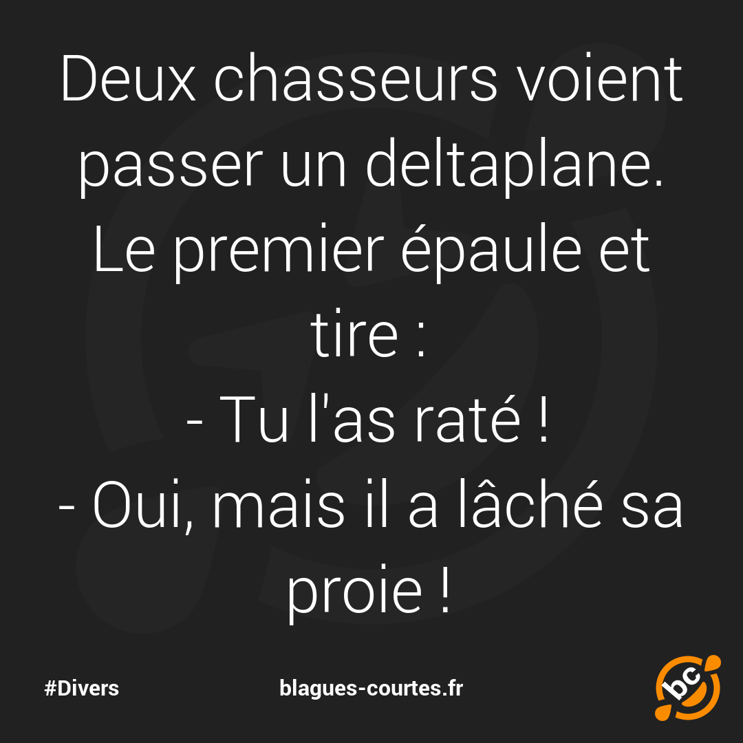 Deux chasseurs voient passer un deltaplane. Le premier épaule et tire :