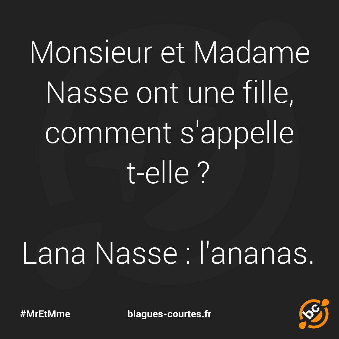 Monsieur et Madame Nasse ont une fille, comment s'appelle t-elle ? Lana Nasse : l'ananas.