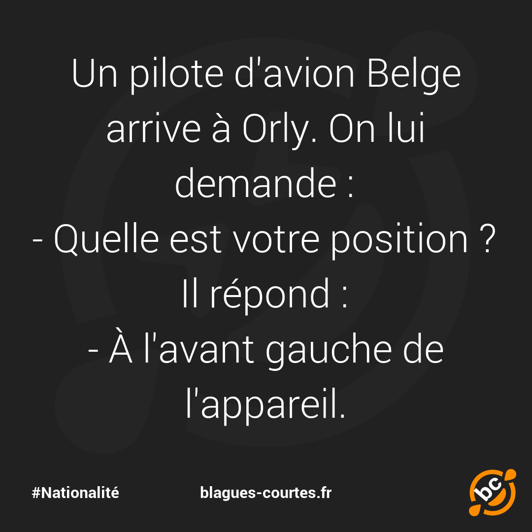 Un pilote d'avion Belge arrive à Orly. On lui demande :