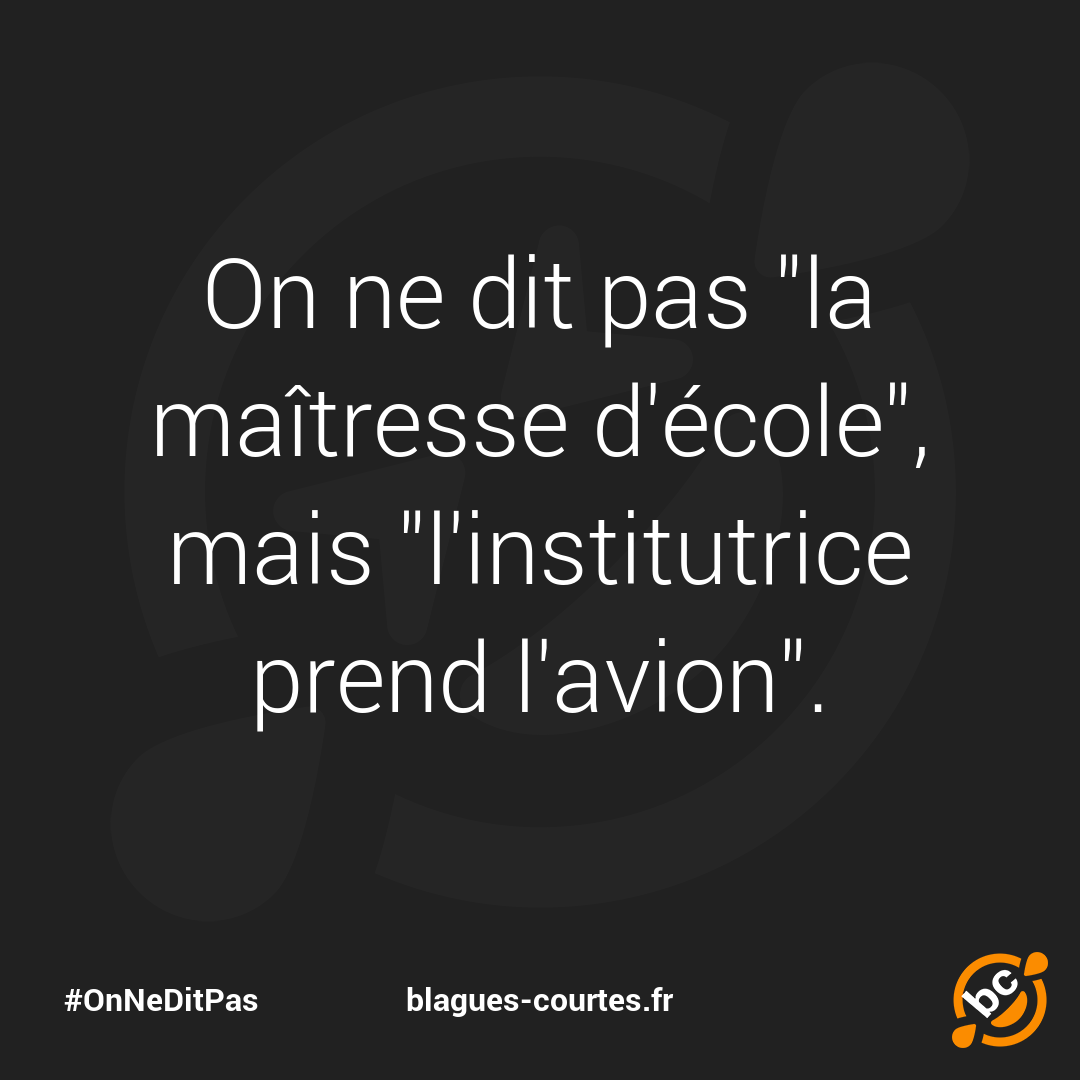 On ne dit pas "la maîtresse d'école", mais "l'institutrice prend l'avion".