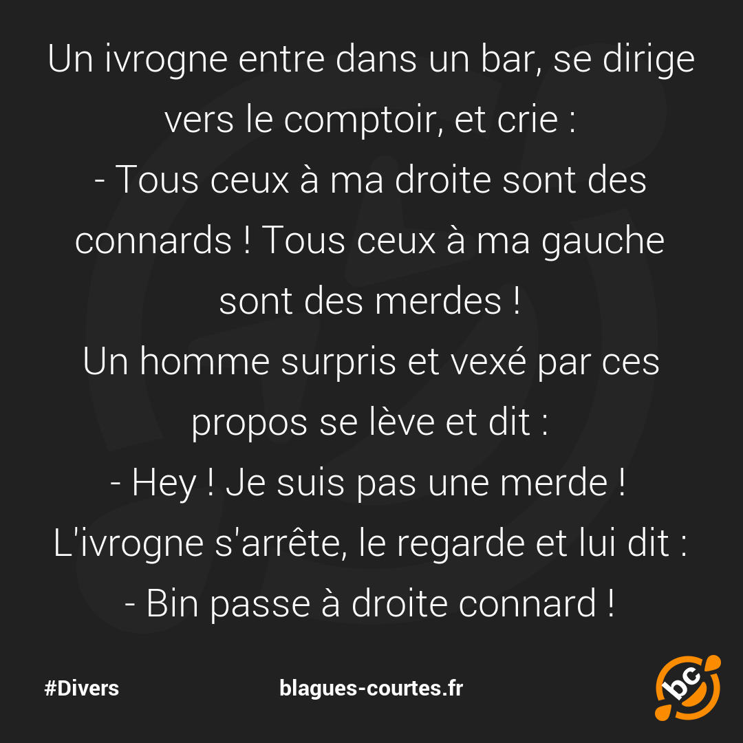 - Tous ceux à ma droite sont des connards ! Tous ceux à ma gauche sont des merdes !