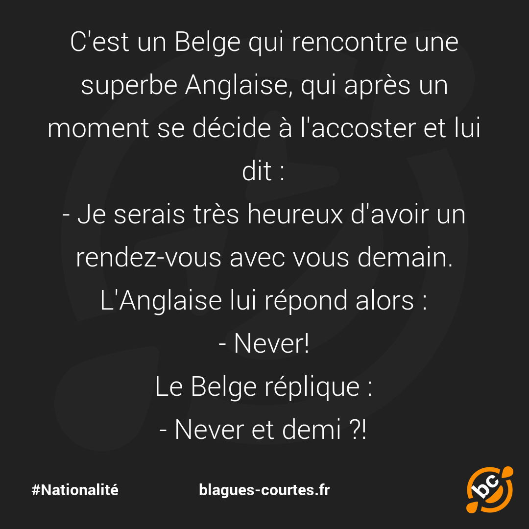 C'est un Belge qui rencontre une superbe Anglaise, qui après un moment se décide à l'accoster et lui dit :