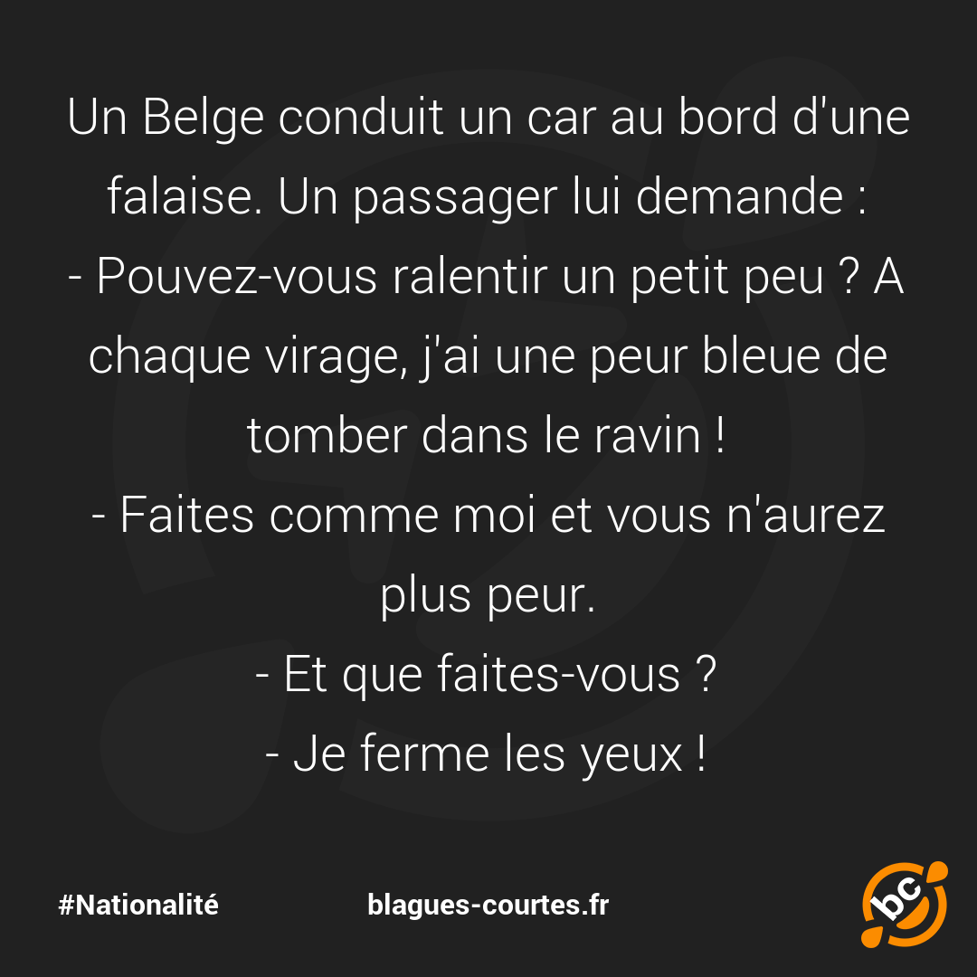 Un Belge conduit un car au bord d'une falaise. Un passager lui demande :