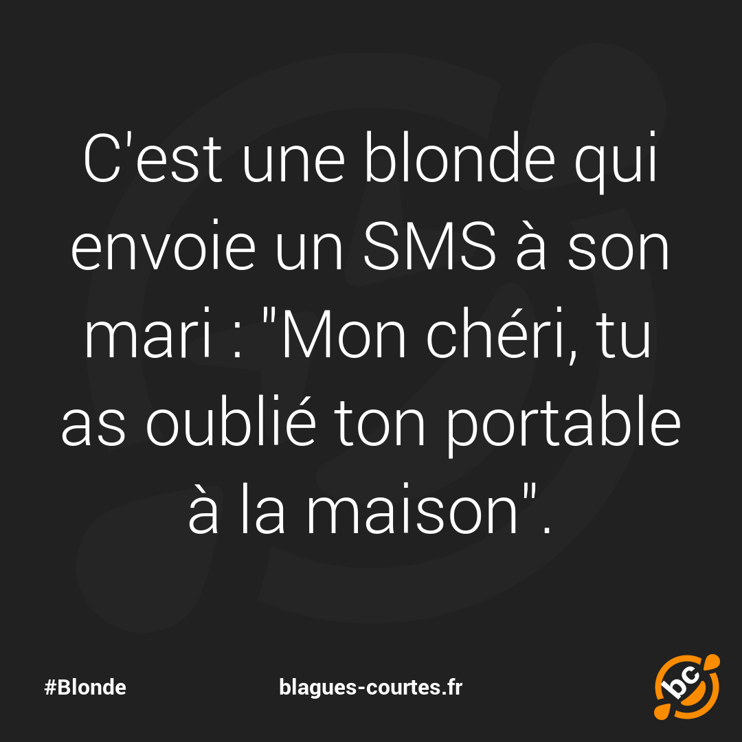 C'est une blonde qui envoie un SMS à son mari : "Mon chéri, tu as oublié ton portable à la maison".