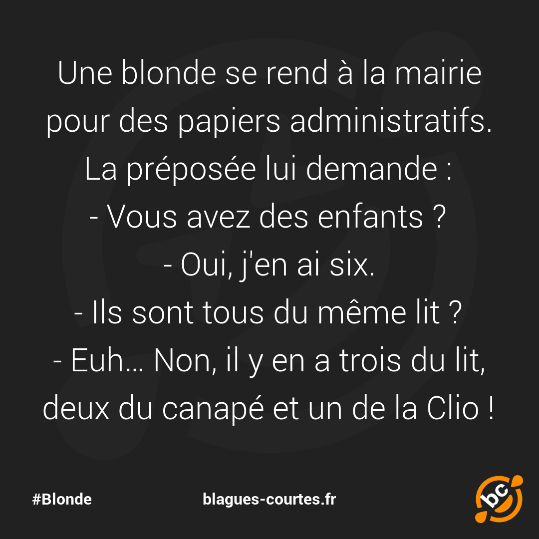 Une blonde se rend à la mairie pour des papiers administratifs. La préposée lui demande :
