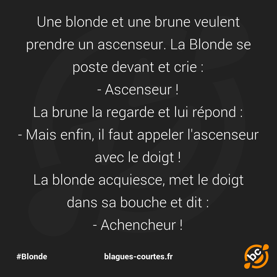 Une blonde et une brune veulent prendre un ascenseur. La Blonde se poste devant et crie :