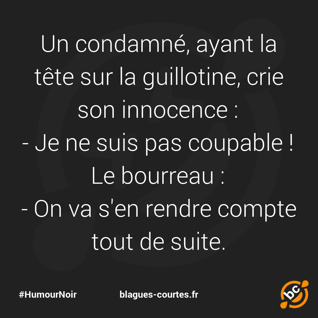 Un condamné, ayant la tête sur la guillotine, crie son innocence :