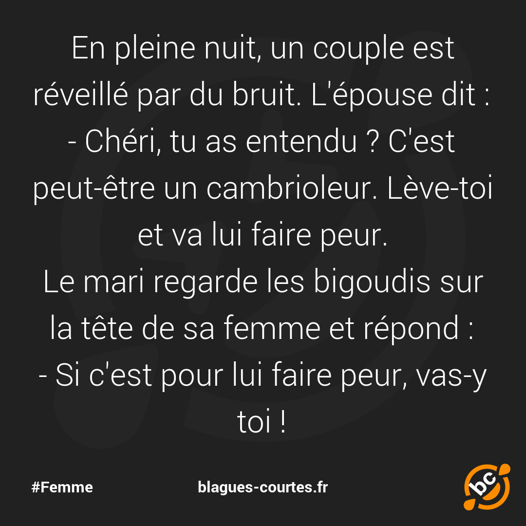 En pleine nuit, un couple est réveillé par du bruit. L'épouse dit :