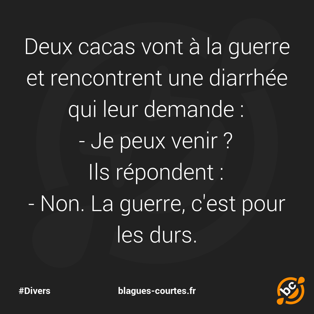 Deux cacas vont à la guerre et rencontrent une diarrhée qui leur demande :