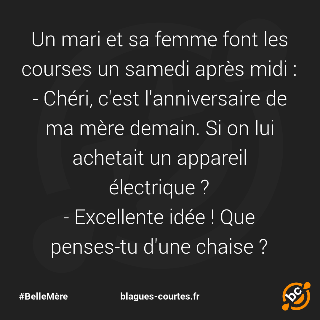 - Chéri, c'est l'anniversaire de ma mère demain. Si on lui achetait un appareil électrique ?