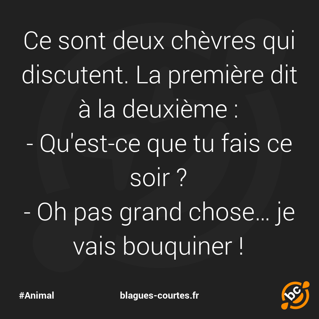 Ce sont deux chèvres qui discutent. La première dit à la deuxième :