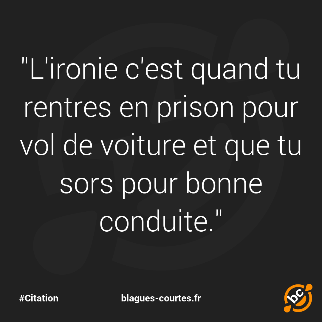 "L'ironie c'est quand tu rentres en prison pour vol de voiture et que tu sors pour bonne conduite."