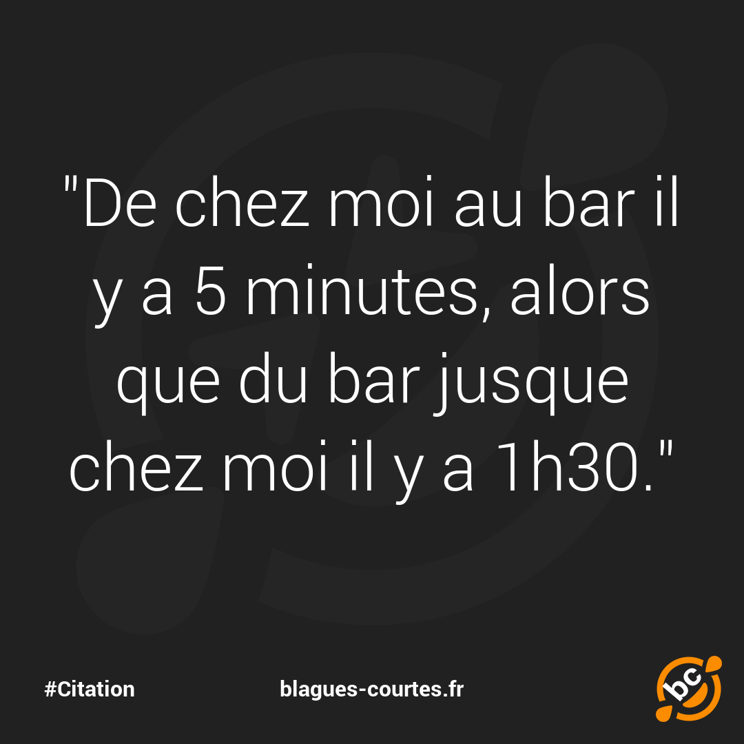 "De chez moi au bar il y a 5 minutes, alors que du bar jusque chez moi il y a 1h30."