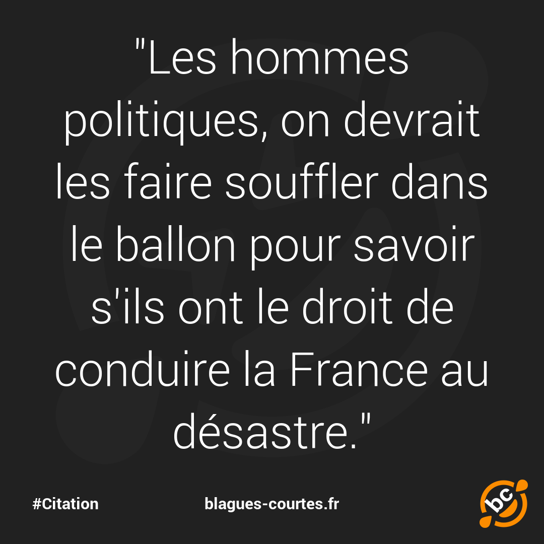 "Les hommes politiques, on devrait les faire souffler dans le ballon pour savoir s'ils ont le droit de conduire la France au désastre."