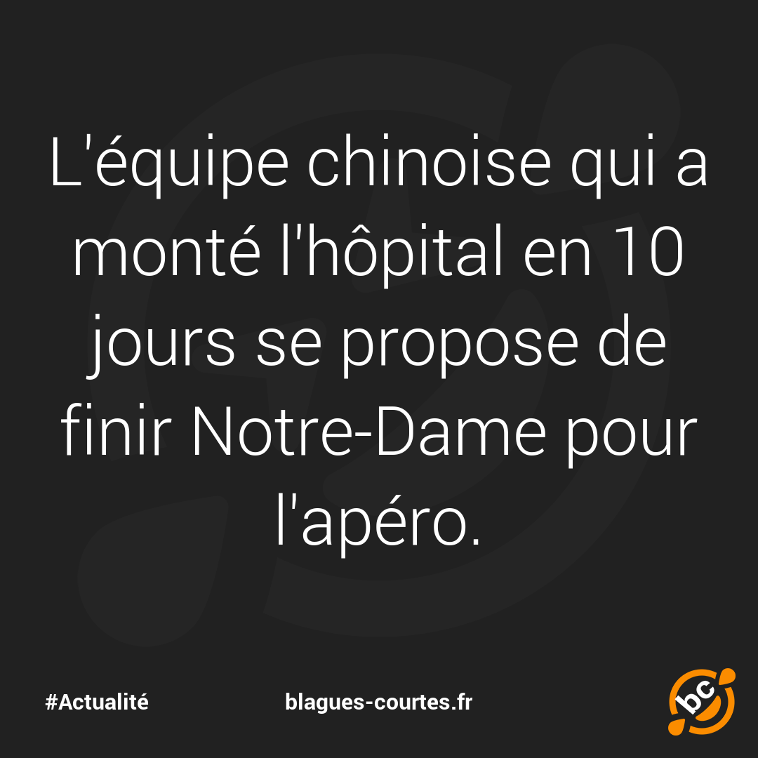 L'équipe chinoise qui a monté l'hôpital en 10 jours se propose de finir Notre-Dame pour l'apéro.
