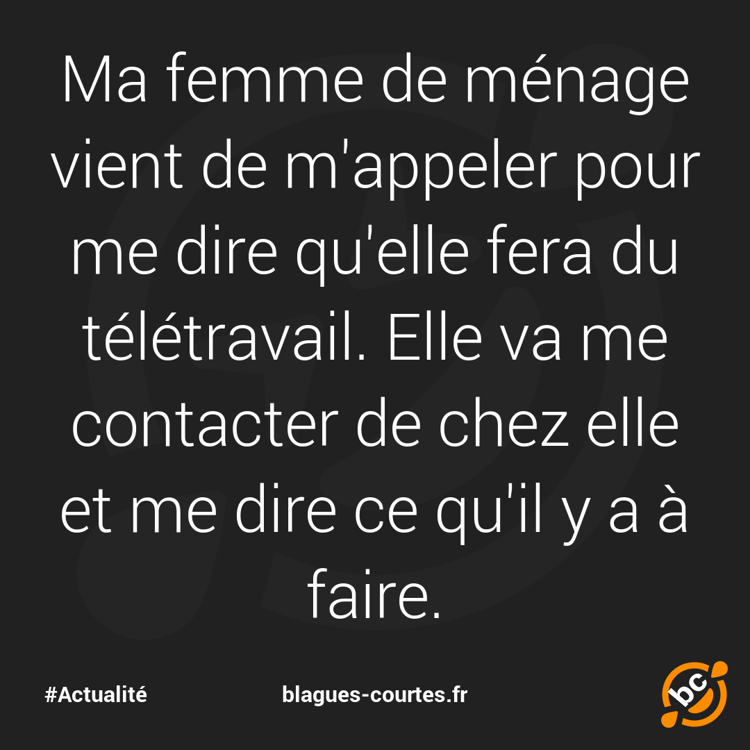 Ma femme de ménage vient de m'appeler pour me dire qu'elle fera du télétravail. Elle va me contacter de chez elle et me dire ce qu'il y a à faire.
