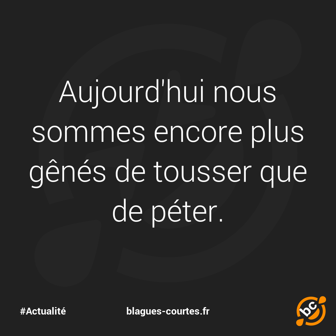 Aujourd'hui nous sommes encore plus gênés de tousser que de péter.