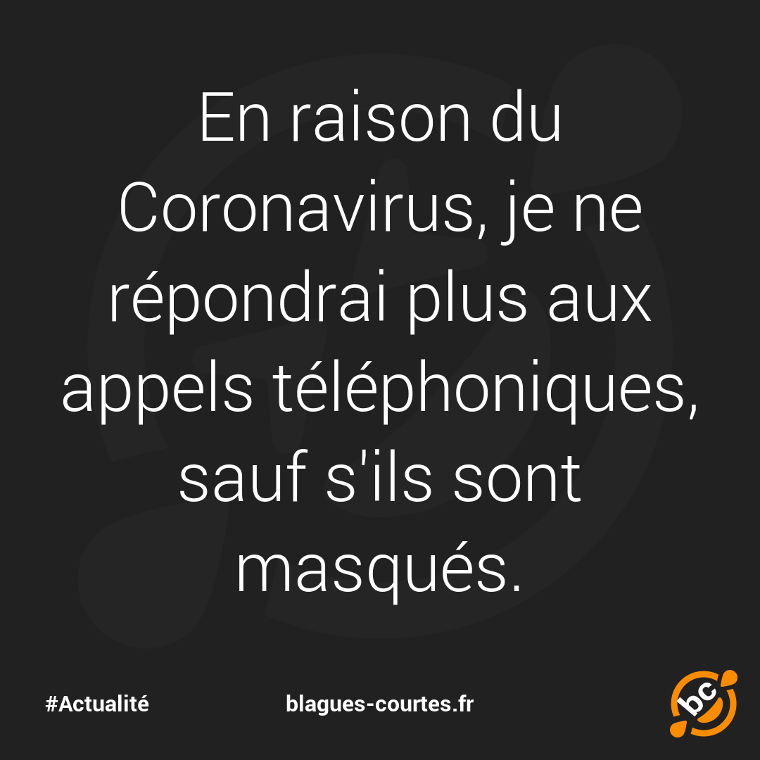 En raison du Coronavirus, je ne répondrai plus aux appels téléphoniques, sauf s'ils sont masqués.