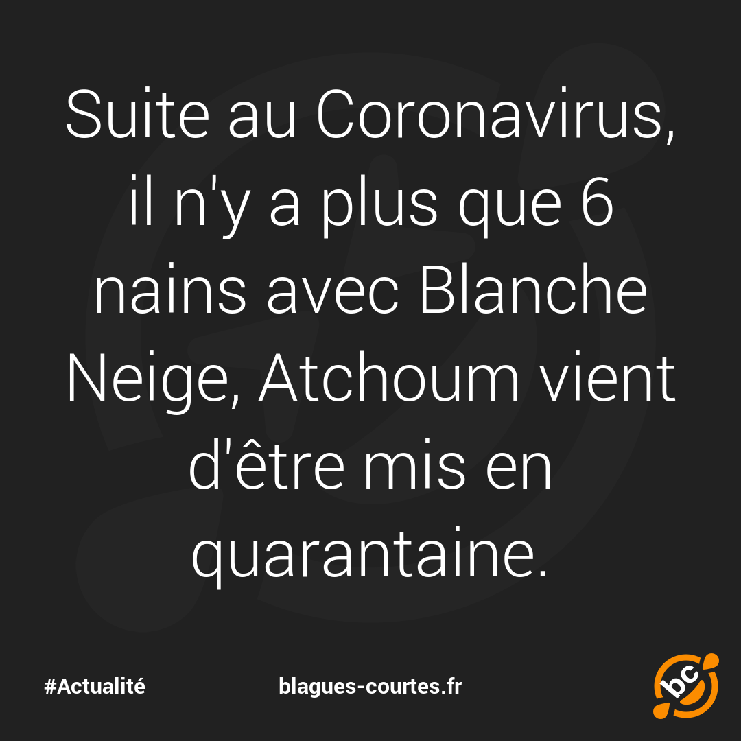 Suite au Coronavirus, il n'y a plus que 6 nains avec Blanche Neige, Atchoum vient d'être mis en quarantaine.