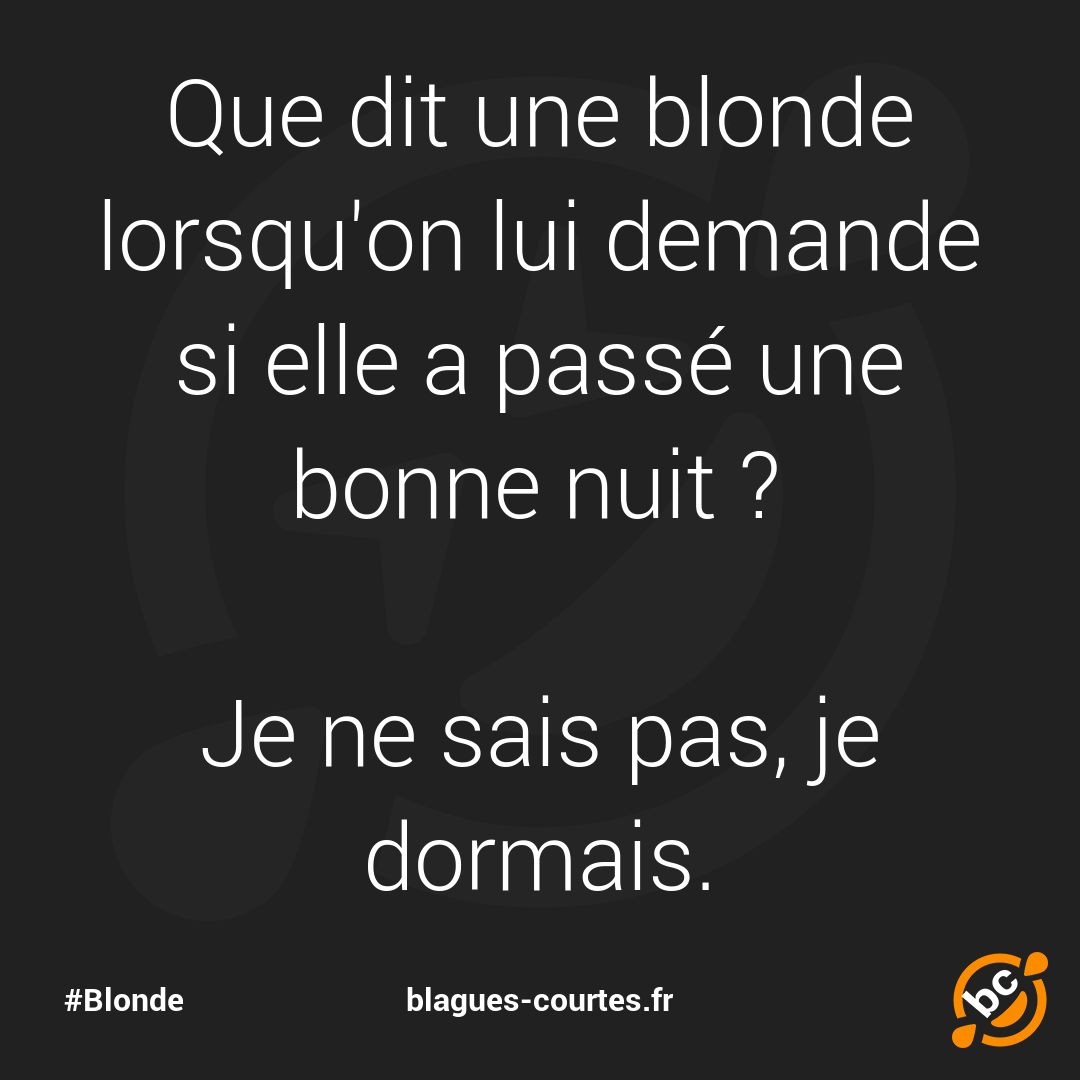 Que dit une blonde lorsqu'on lui demande si elle a passé une bonne nuit ?