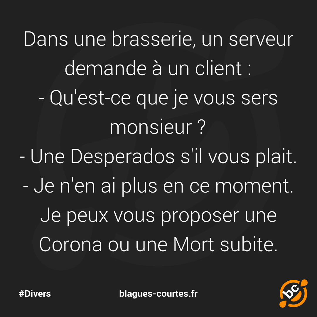 - Je n'en ai plus en ce moment. Je peux vous proposer une Corona ou une Mort subite.