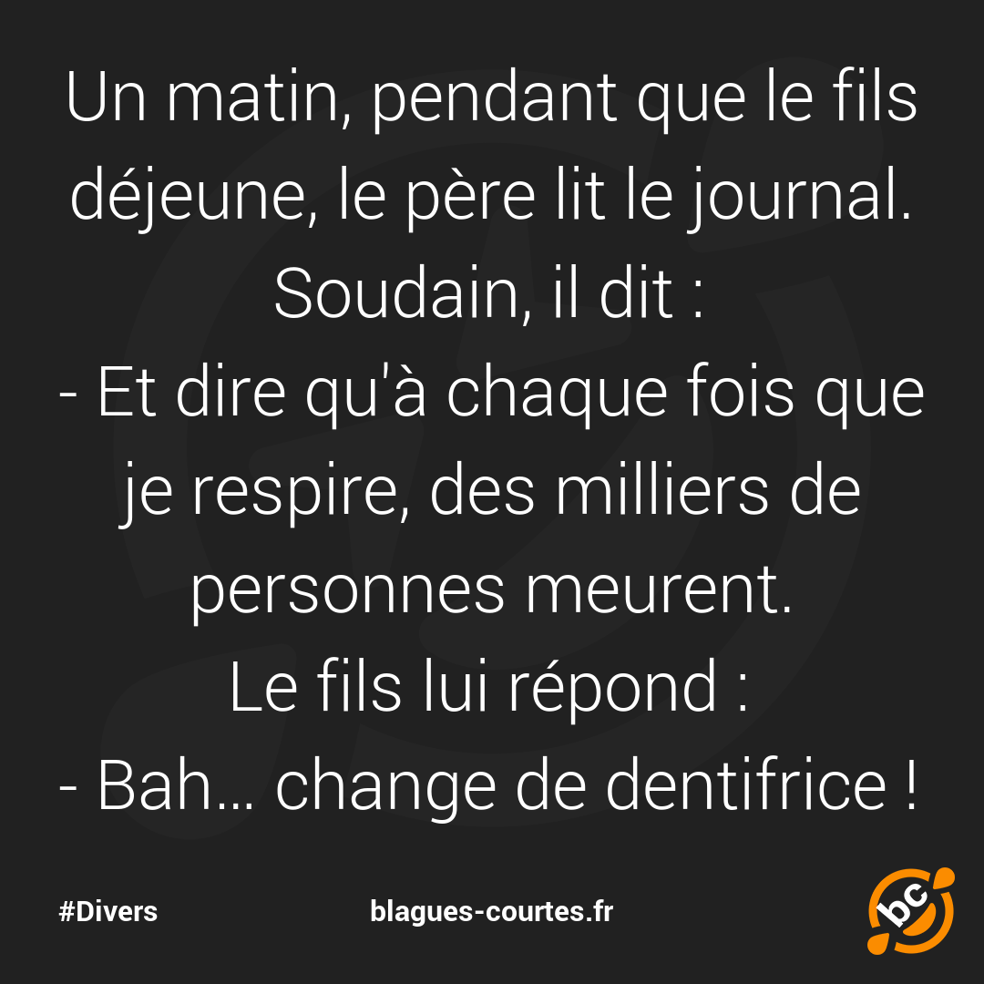 Un matin, pendant que le fils déjeune, le père lit le journal. Soudain, il dit :